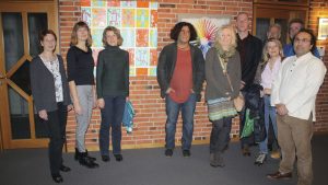 Techniken von der Malerei und der Fotografie über den Linoldruck, Mosaike und Papierarbeiten bis hin zur Bildhauerei machen den besonderen Reiz der Ausstellung aus. Dozentin Tanja Scherbaum begleitete die Veranstaltung musikalisch. „Mal probieren?“, fragte die Sängerin das Publikum und drückte einer Freiwilligen ein buntes Kinderglockenspiel in die Hand.